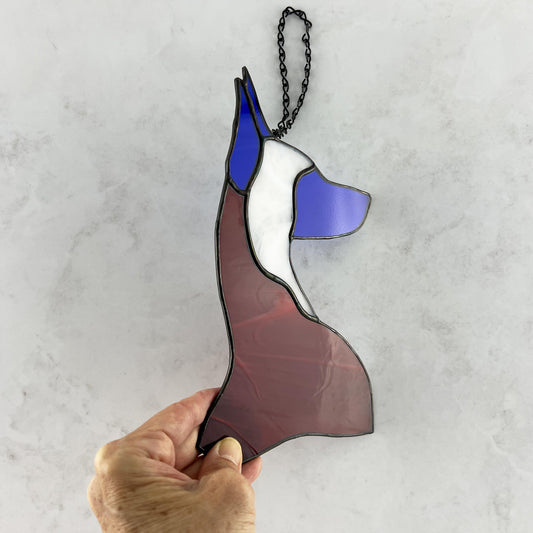 Red, White, and Blue Doberman Pinscher Stained Glass Suncatcher