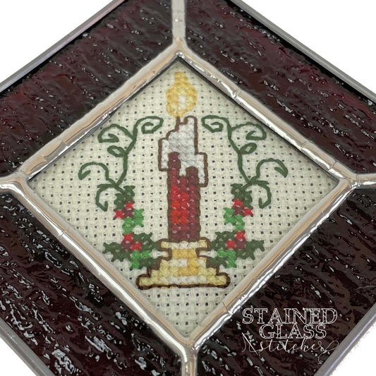 Red Candle Ornament with a Red Ripple stained glass frame