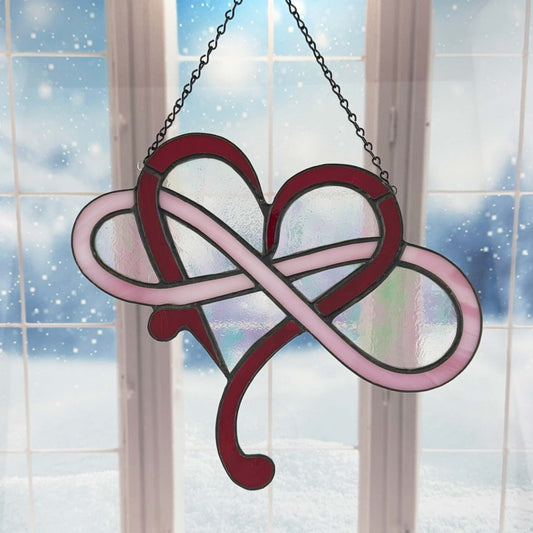 Modern Infinity Heart Suncatcher - Red, Pink, Clear Iridescent