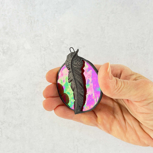 Modern Infinity Heart Suncatcher - Pink, Blue Iridescent and White Swirl
