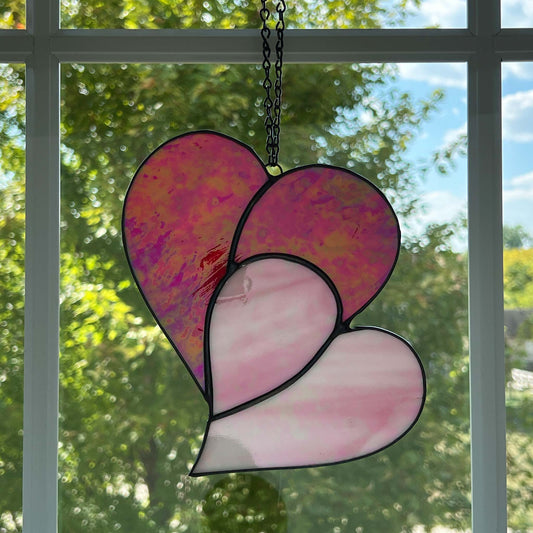 Heart Suncatcher - Double Heart in Red & Pink Iridescent
