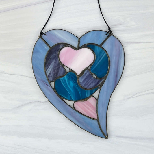Hearts within a Heart Suncatcher - Blue, Pink, Purple