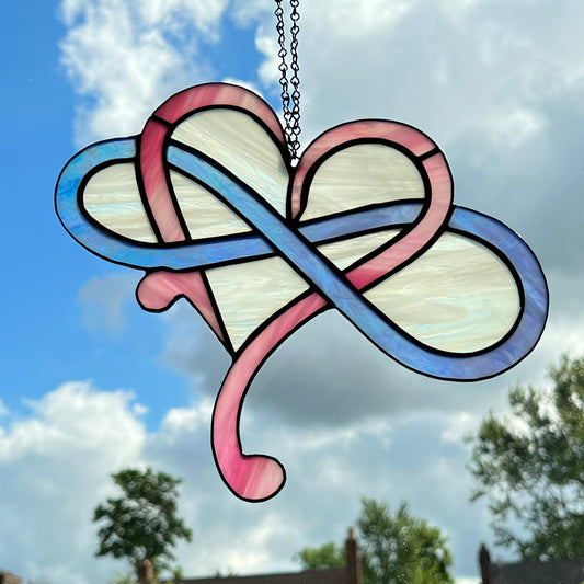 Modern Infinity Heart Suncatcher - Pink, Blue Iridescent and White Swirl
