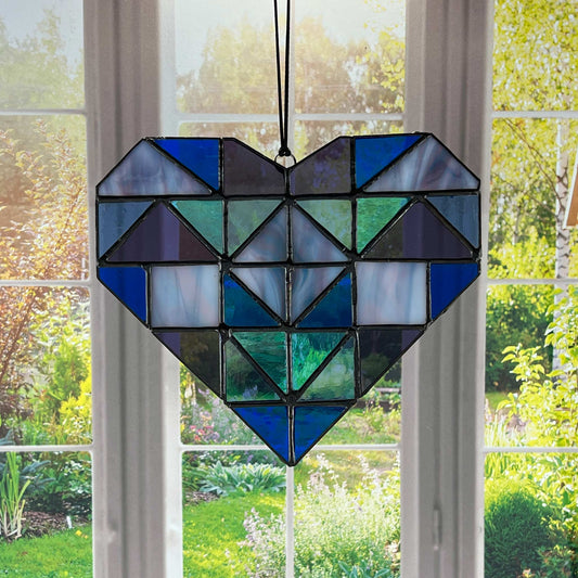 Patchwork Quilt Heart Suncatcher - Blues & Purples