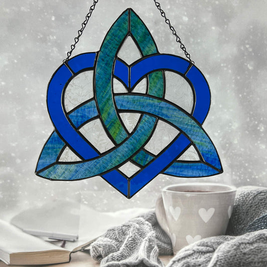 Celtic Triquetra Heart (Celtic Sisters Knot) Suncatcher - Blue/Green