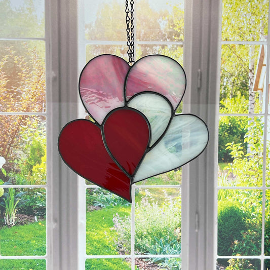 Heart Suncatcher - Three Hearts in Red Pink & White
