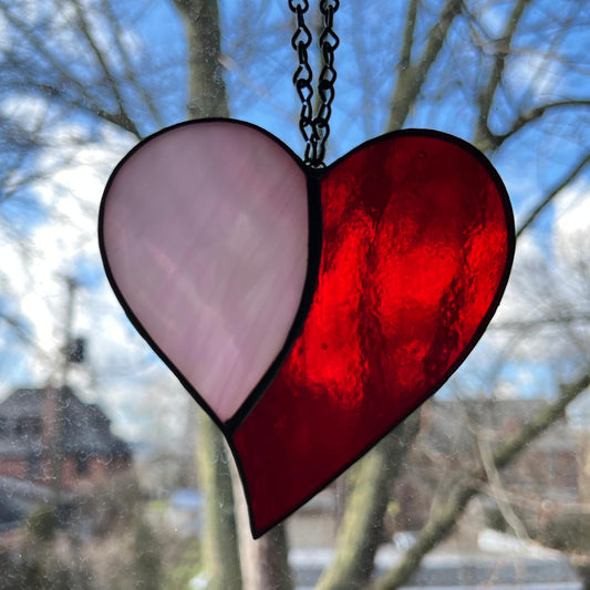 Heart - Red and Iridescent Pink Suncatcher (3.75 x 3.75)