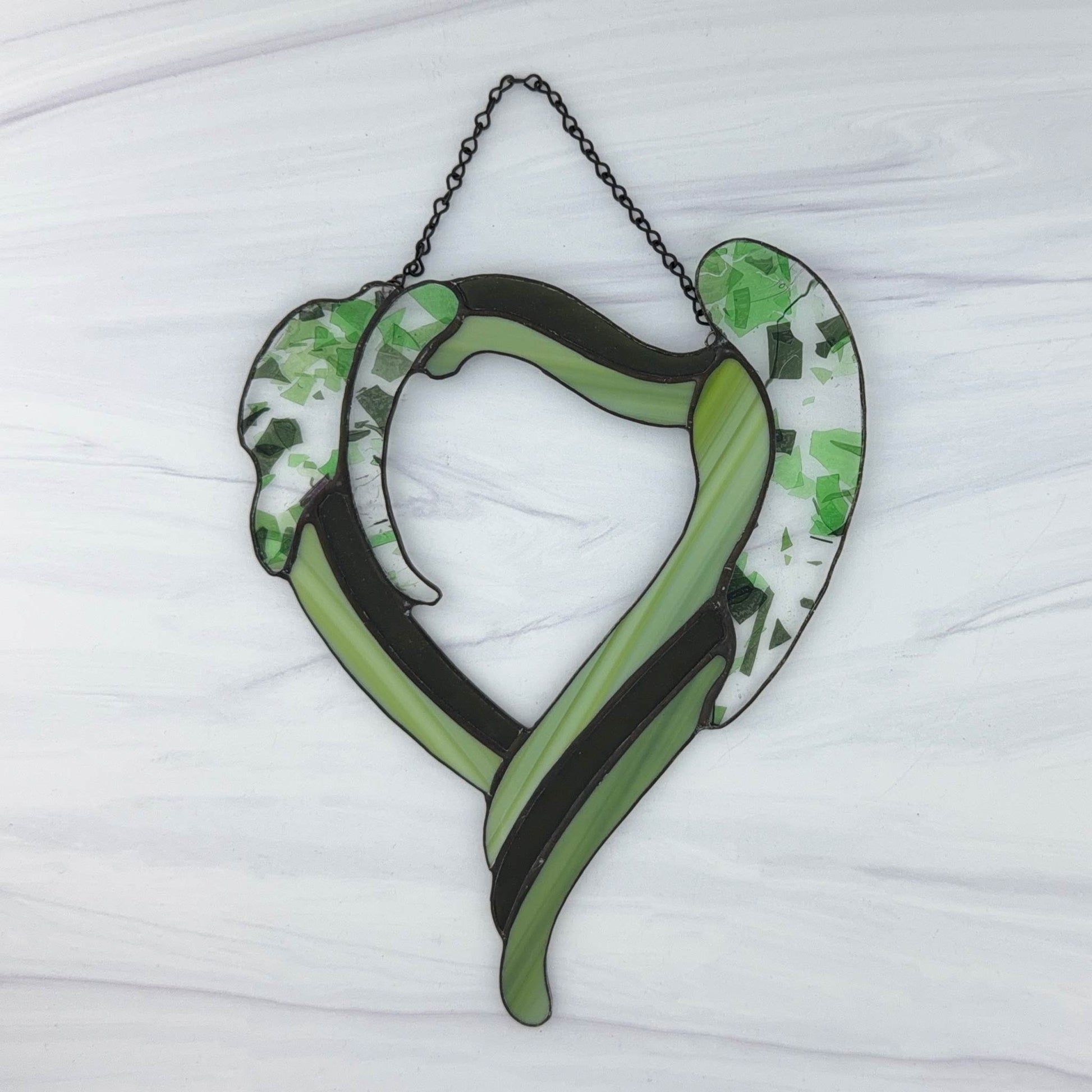 - Materials: Stained Glass (Spectrum, Oceanside, Kokomo, Wissmach, and/or Youghiogheny glass) solder, copper foil, and patina (black or copper)
