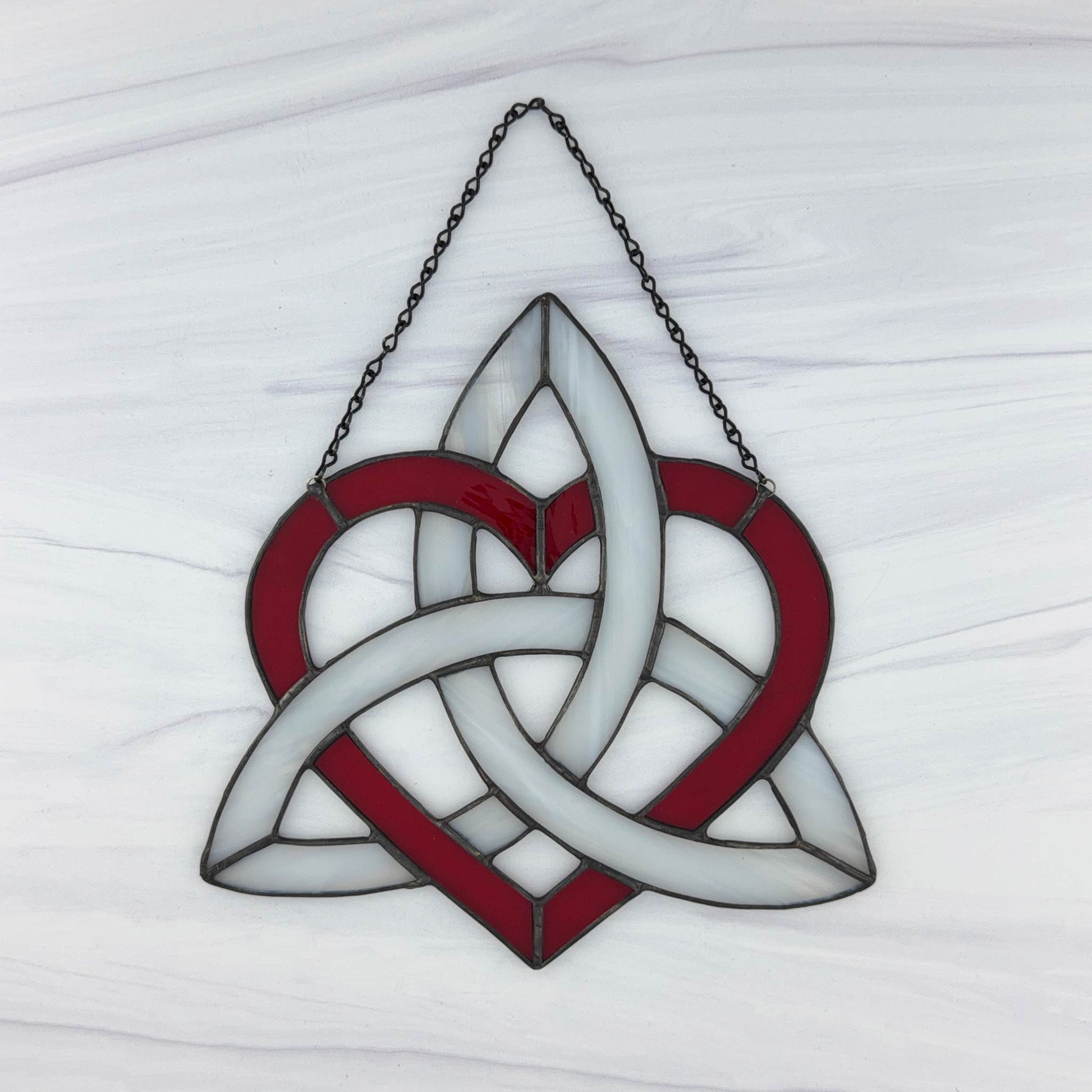 Stained Glass Celtic Sisters Knot with Red Heart and White Triquetra