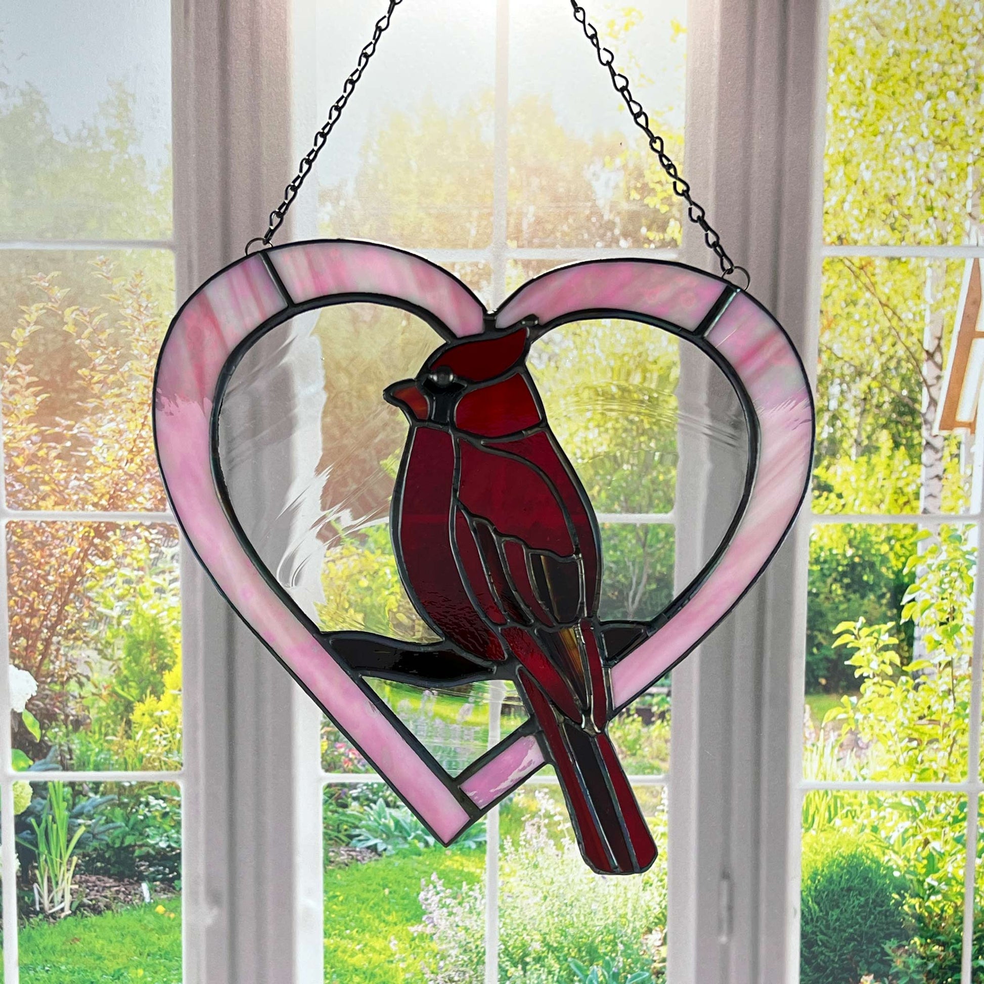 - The colors and light shining through your Cardinal Heart suncatcher display subtle changes throughout the day